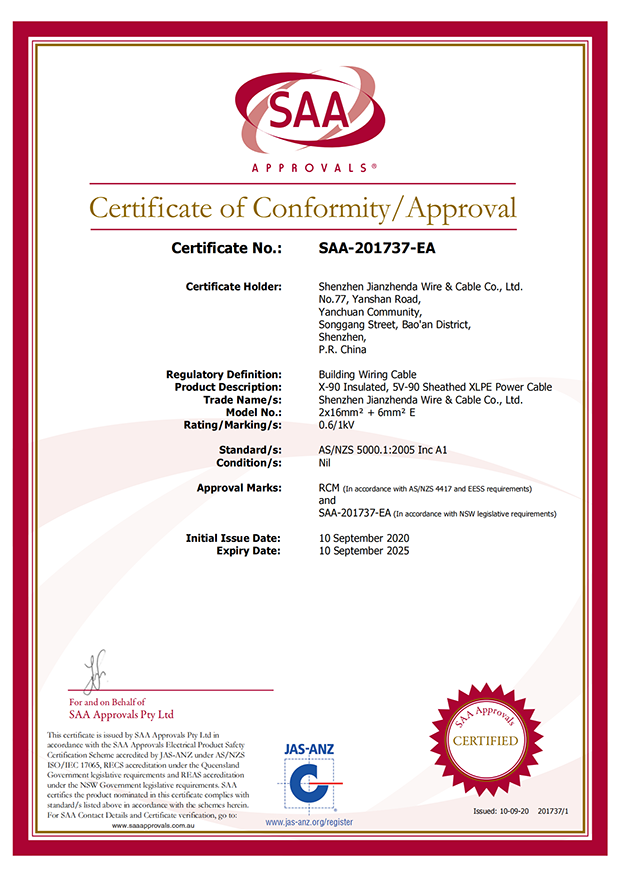 深圳建圳達(dá)電線(xiàn)電纜有限公司,成立于2000年,是一家電線(xiàn)電纜制造商,我們通過(guò)了世界各地不同市場(chǎng)的多數(shù)認(rèn)證,如:CCC、RoHS、CB、SAA、TUV、VDE、PSE、BPS、UL、CSA。我們根據(jù)定制產(chǎn)品不斷更新新的認(rèn)證。經(jīng)過(guò)數(shù)十年的發(fā)展,我們與來(lái)自世界各地的客戶(hù)建立了長(zhǎng)期的合作關(guān)系。我們?cè)?jīng)是菲律賓機(jī)場(chǎng),,柬埔寨的電力站,美國(guó)的醫(yī)院,工廠(chǎng),埃塞俄比亞的水電站項(xiàng)目。我們是一家值得信賴(lài)的電線(xiàn)供應(yīng)商。